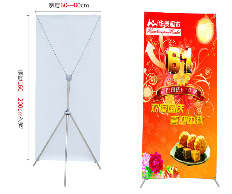 X展架的优势:⒈ 造型简练 ,使用方便,1分钟完成 2 .轻巧便携,方便运输、携带、 3 .安装简易,操作方便 ⒋ 经济实用,可多次更换画面